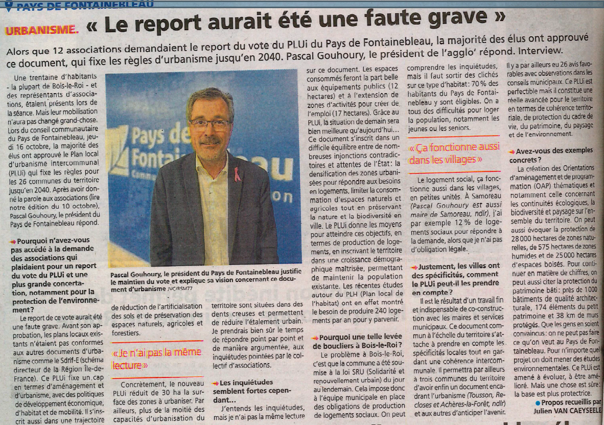 et lire l’interview du Président de la CAPF sur PLUI dans l’article de presse ci-dessous de la République de Seine-et-Marne.