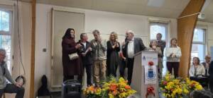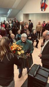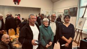 La médaille Citoyenne d’Honneur de notre village a été décernée à Emilie Cron, artiste de talent au grand parcours professionnel dont deux de ses oeuvres, des silhouettes de personnages étaient présentées dans la salle. Ces sculptures représentent un ancien valdéen et une immense écrivaine, également vues dans beaucoup d’endroits et dans les musées.