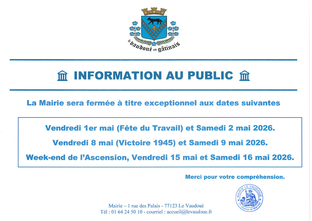 La Mairie sera fermée à titre exceptionnel aux dates suivantes