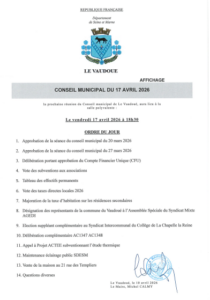 Ordre du jour du conseil municipal du vendredi 17 avril 2026, à 18h30