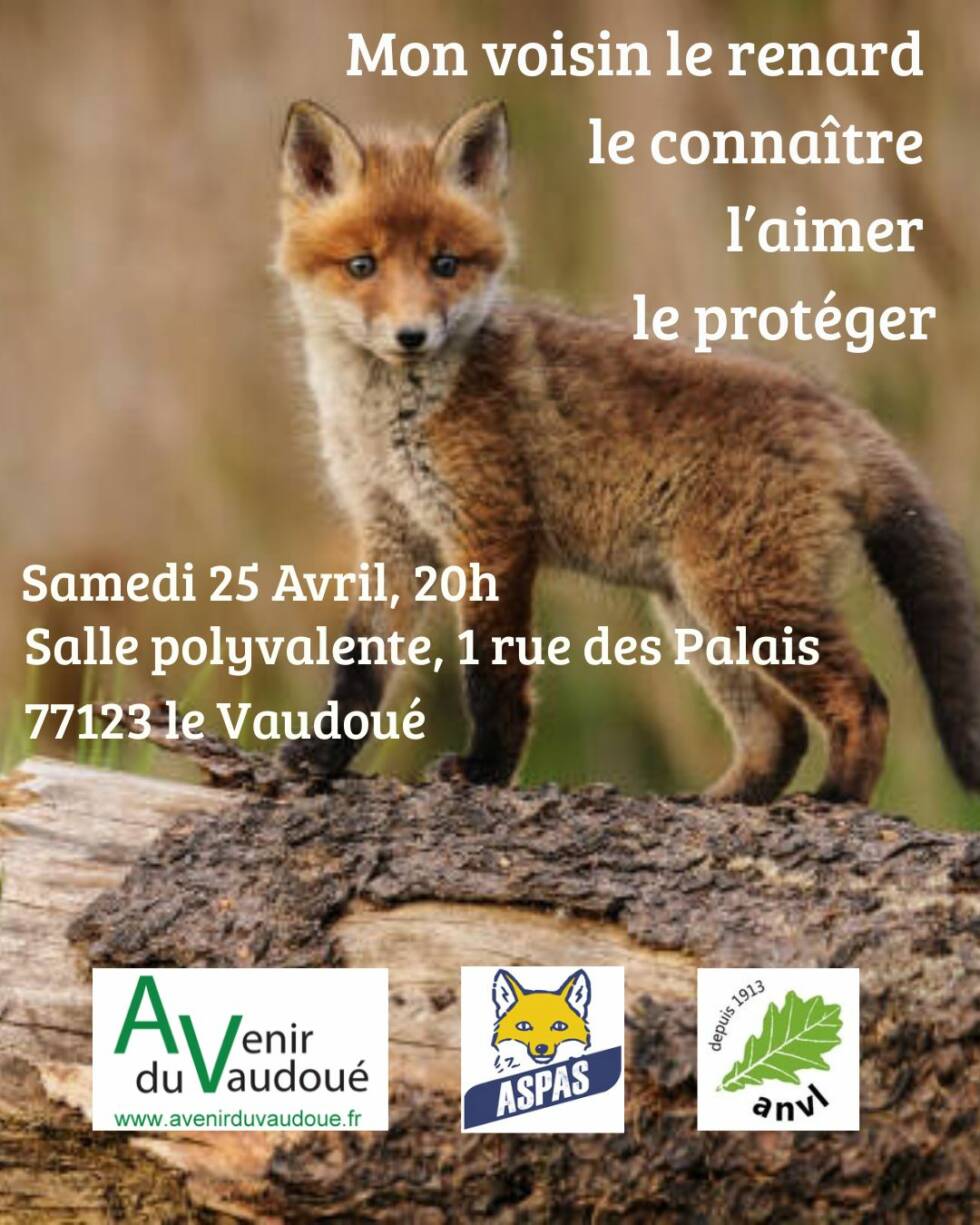 Le 25 avril 2026 la Mairie du Vaudoué reçoit dans sa salle polyvalente, après son traditionnel « Brico-Café » annuel à 14h, une conférence débat animée conjointement par l’ANVL et l’ASPAS ( Association pour la protection des animaux sauvages)à 20h.