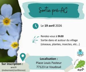Vous avez été nombreux, par une chaleur inattendue en ce 8 avril, à nous retrouver autour des mares du Vaudoué ! Et pour le bonheur de tous, certains d’entre vous étaient accompagnés d’enfants passionnés par la découverte ! De nouvelles aventures sont au programme de ce mois d’avril : le dimanche 19 l’ANVL tiendra son Assemblée Générale à 14h dans la salle de la Mairie. Avant cela et à partir de 9h30, l’association organise dans et autour du village, une…